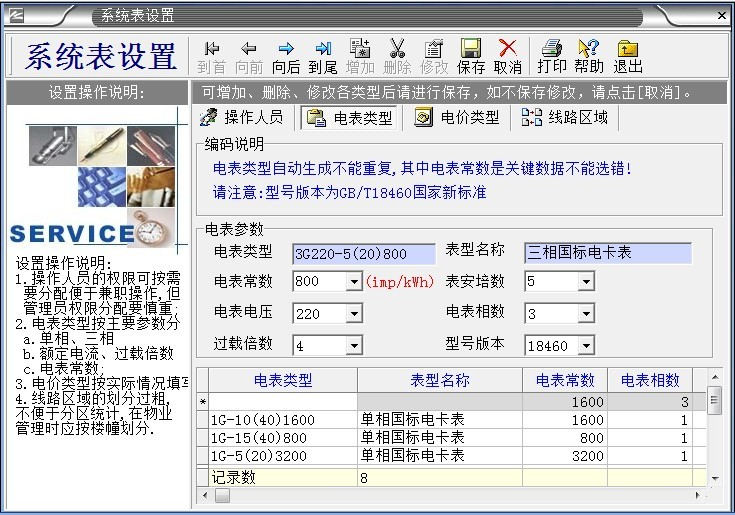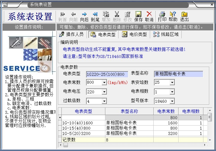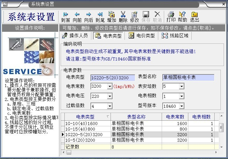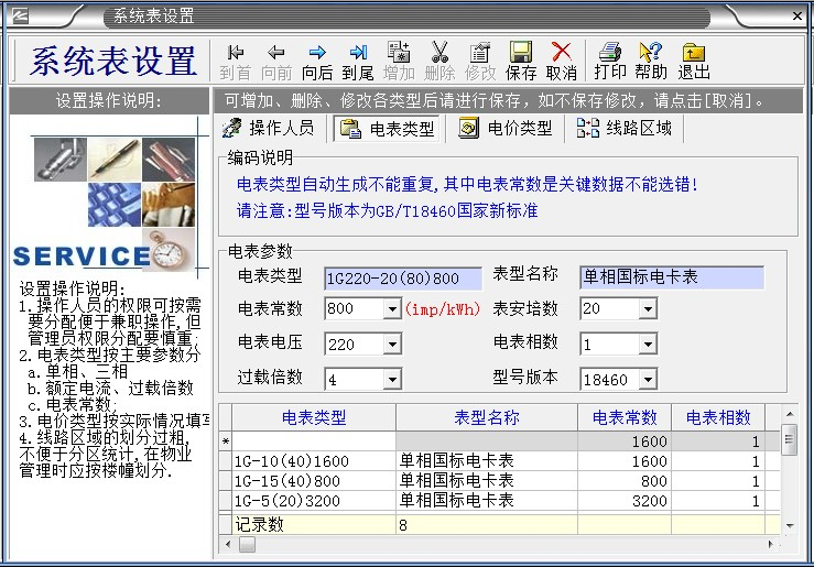 8、“電表類型”,自動(dòng)生成:3G220-20(80)400