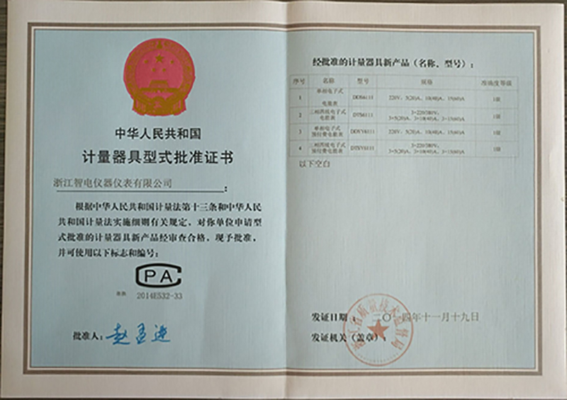 計(jì)量器具型式批準(zhǔn)證書(shū)