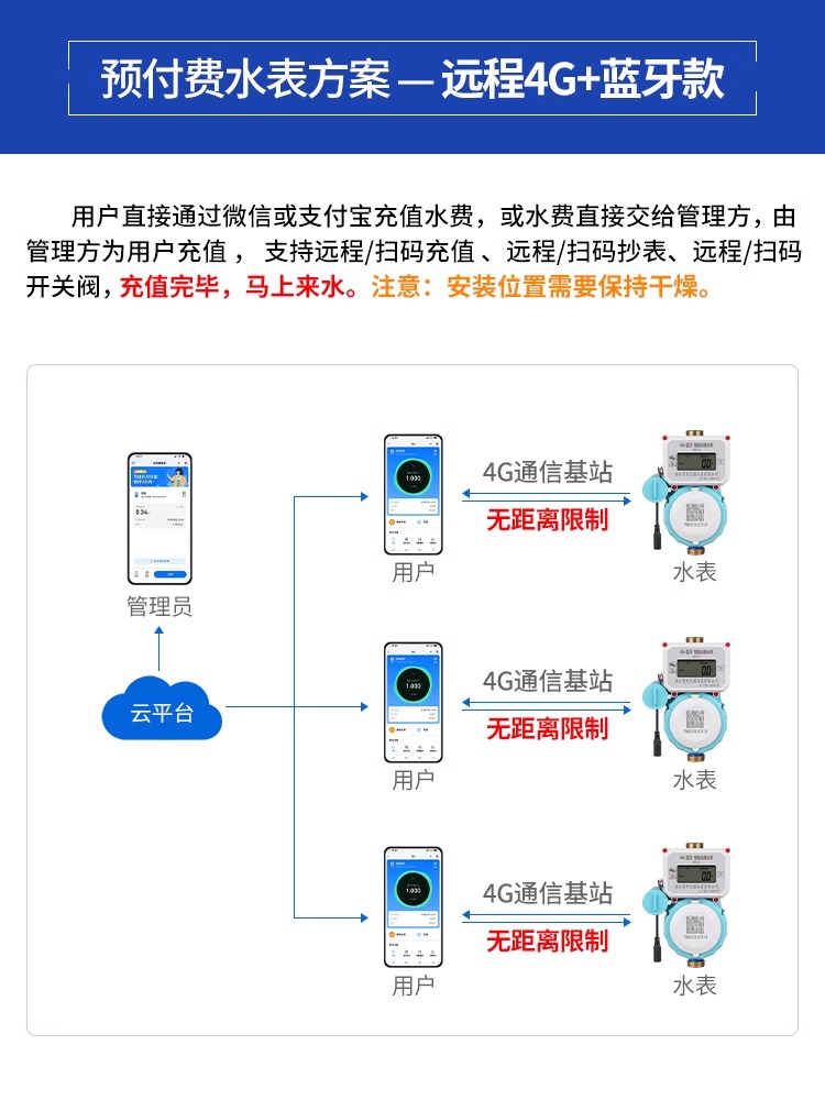 訂購產(chǎn)品: 4G+藍牙遠程預付費水表