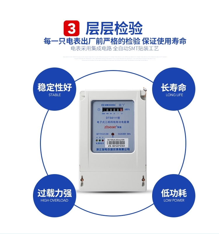 DTS6111型三相四線和DSS6111型三相三線兩種型號三相電子式有功電能表,內(nèi)部運(yùn)用了集成電路在經(jīng)過SMT工藝生產(chǎn)制作而成。結(jié)構(gòu)設(shè)計(jì)合理,制作工藝先進(jìn)。跟傳統(tǒng)的電能計(jì)量表對比,三相電子式有功電能表的測量準(zhǔn)確度高、性能可靠、節(jié)能。