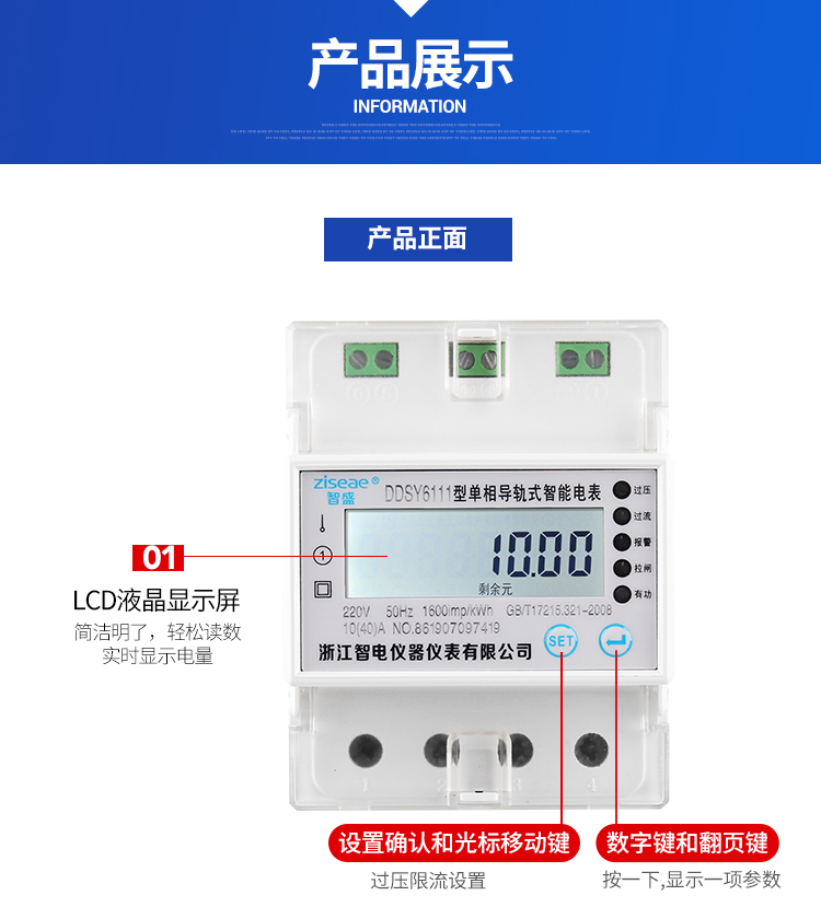 DDSY6111型遠程導軌式單相預付費電能表,采用單片微控制器進行數據采集,處理和保存。具有良好的抗電磁干擾,低功耗,高過載、準確度高,壽命長等優(yōu)點。其性能指標符合GB/T 17215.321-2008《1級和2級靜止式交流有功電度表》中對電子式有功電度表的技術要求,符合GB/T15284-2002《多費率電能表 特殊要求》對復費率電能表的技術要求,并符合GB/T18460-2001《IC卡預付費售電系統(tǒng)》的各項技術要求。通信規(guī)約可支持DL/T 645-2007《多功能電能表通信規(guī)約》,為用電自動化管理提供了必備的條件。